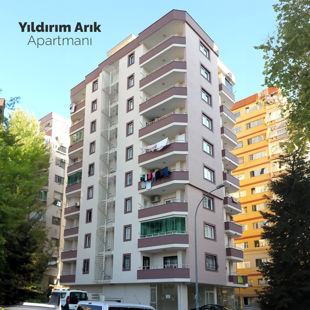 Yıldırım Arık Apartmanı, toplamda zemin katı dahil olmak üzere 10 kattan oluşan bir konut projedir.Daire Seçenekleri:2+1 Daireler: Toplamda 18 adetDairelerin Metrekare Seçenekleri:100 m² + 60 m² İş YeriYapım Yılı: 2013 - 2014